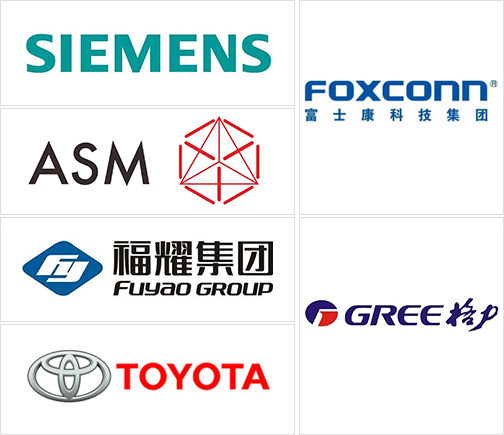眾多國(guó)內(nèi)外知名企業(yè)見(jiàn)證:富士康、格力、美的、赫比、福耀、東風(fēng)、豐田、中國(guó)一汽,住友,松下,格蘭仕、西門子、廣東宏遠(yuǎn)等。